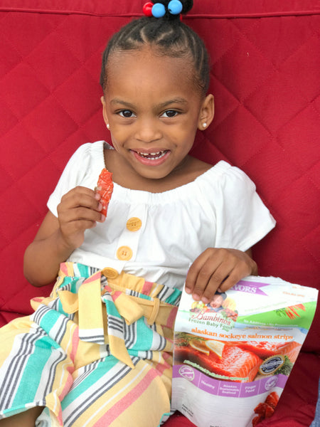 FISH FACTOR: Bambino’s launches Bristol Bay baby food By: Laine Welch Frozen sockeye salmon strips bring tasty nutrition and relief to teething babies. The lightly seasoned salmon strips, made mostly from Bristol Bay reds, are the third product made by Bambino’s Baby Food of Anchorage that is aimed at getting more seafood into the mouths of babes. “I always kind of giggle because it’s not going to be just for the little ones. I’m sure mom and dad and elder brother or sister are going to be gnawing on those as well,” said Zoi Maroudas, Bambino’s founder and operator. “I also wanted to honor our indigenous families and traditions and share how natural, nutrient-rich omega strips can be so good...